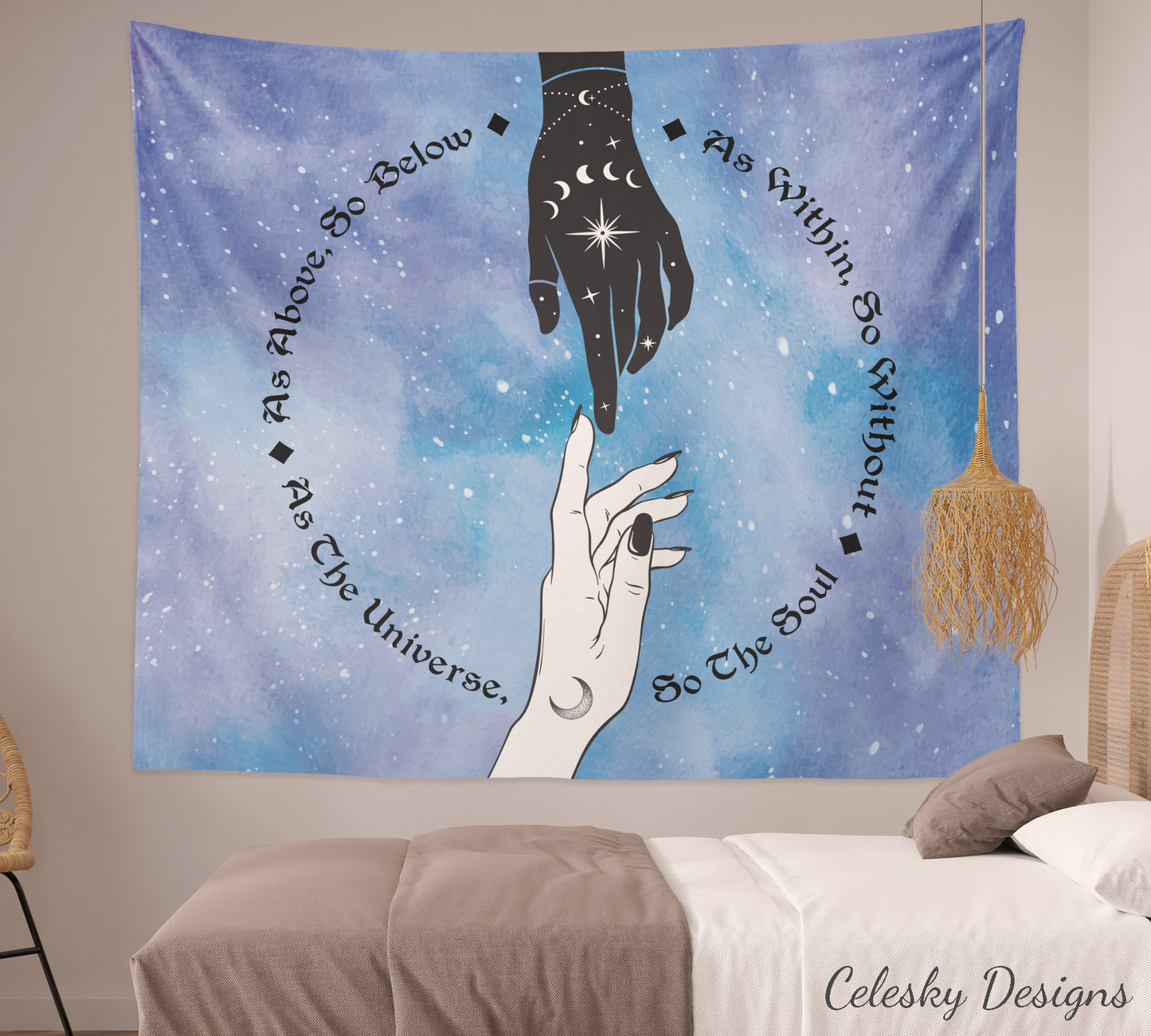 As Above So Below Tapestry hand of universe Wall Art Spiritual Tapestries Meditation Tapestry blue Tapestry